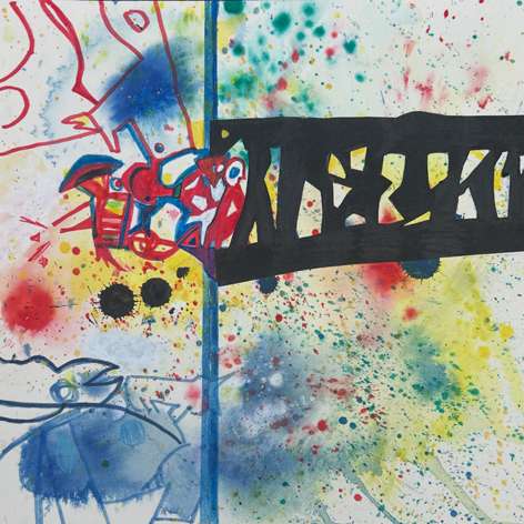 „up“ September 2025 Tusche auf Leinwand auf Sperrholz